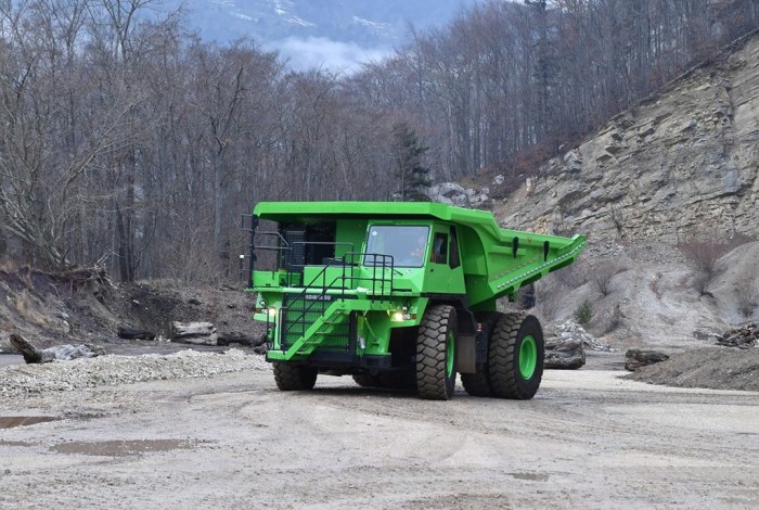 Як основу для своєї машини інженери Kuhn використовували Komatsu HB 605-7. Самоскид був обладнаний потужною батареєю ємністю 600 кВт∙год, а важить це диво інженерної думки 4 тонни. Ємності акумулятора вистачило б для того, щоб живити шість цивільних електромобілів. Головне досягнення швейцарців у тому, що вони розбили шкідливий стереотип про нездатність електродвигунів впоратися з важкими кар’єрними автомобілями.